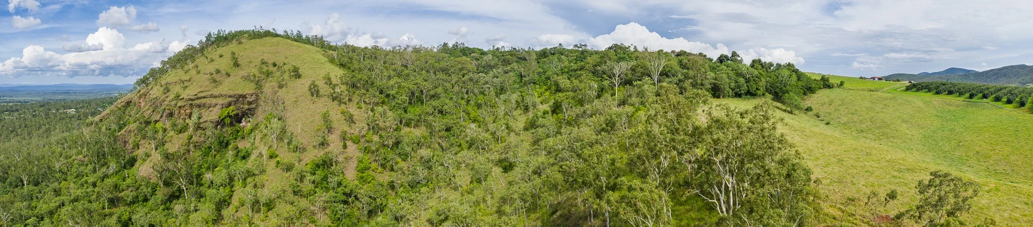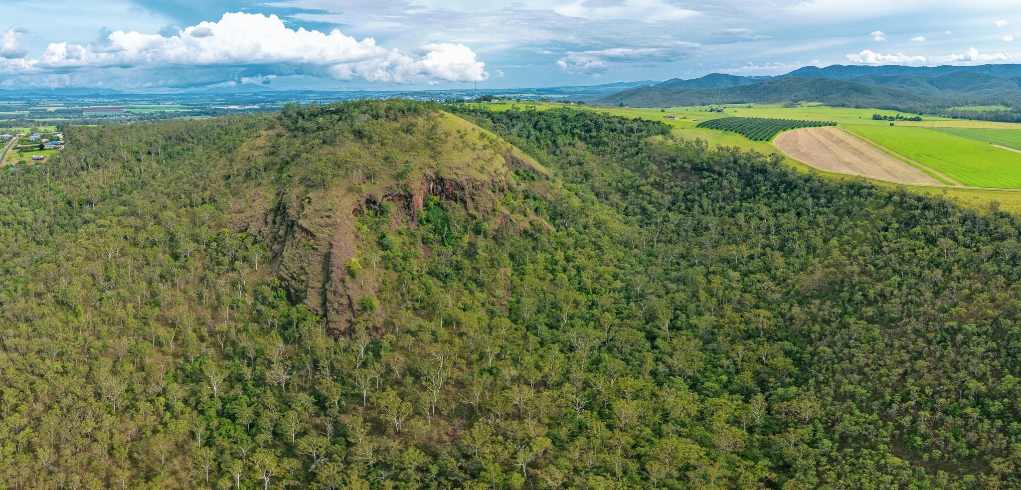The vegetation patterns visible in the imagery are themselves a direct expression of volcanic geology. The exposed pyroclastic cliffs support sparse, stress-tolerant communities adapted to skeletal soils. The lower slopes, where weathered basalt has developed into the deep krasnozem soils characteristic of the Tablelands, carry subtropical dry sclerophyll forest. The cleared summit demonstrates the extraordinary agricultural productivity of these basaltic soils — the same olivine-bearing basalt that makes Bones Knob geologically interesting also weathers to produce the most fertile soil types in Far North Queensland.